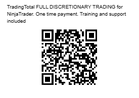 The TradingTotal FULL DISCRETIONARY TRADING for NinjaTrader replicates several popular TradingTotal Automated Strategies entry rules for manual trading modality, and includes the following proprietary backgrounds and indicators: